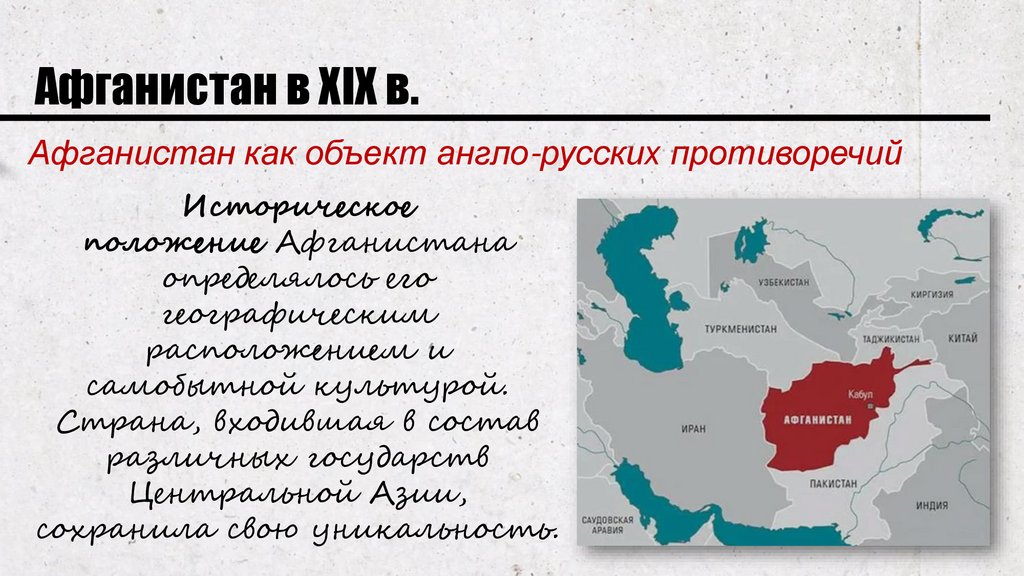 Афганистан в XIX в.Афганистан как объект англо-русских противоречий