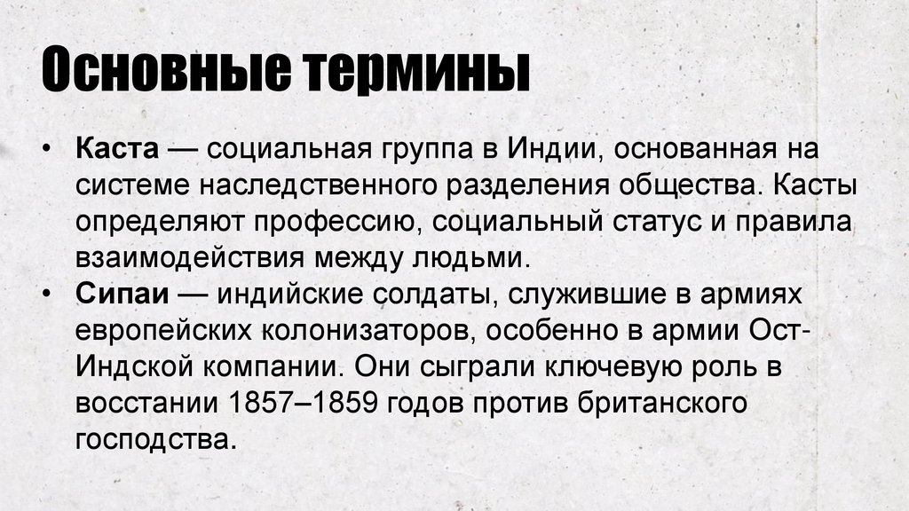 Основные термины• Каста — социальная группа в Индии, основанная на