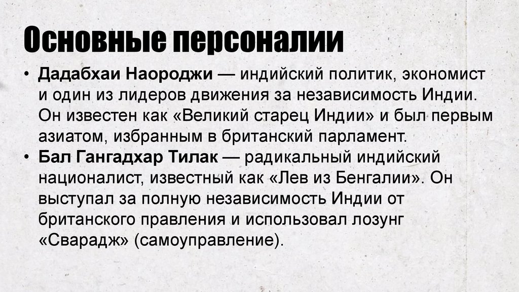 Основные персоналии• Дадабхаи Наороджи — индийский политик, экономист
