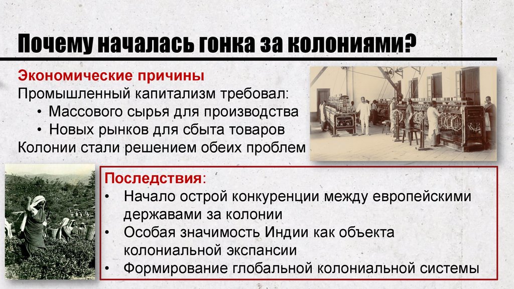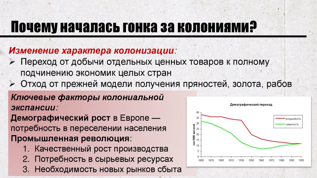 Почему началась гонка за колониями?Изменение характера колонизации: