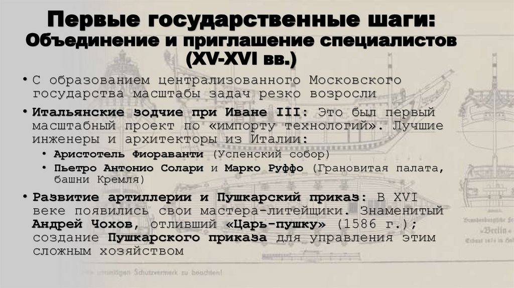 3. Первые государственные шаги: Объединение и приглашение специалистов (XV-XVI вв.)