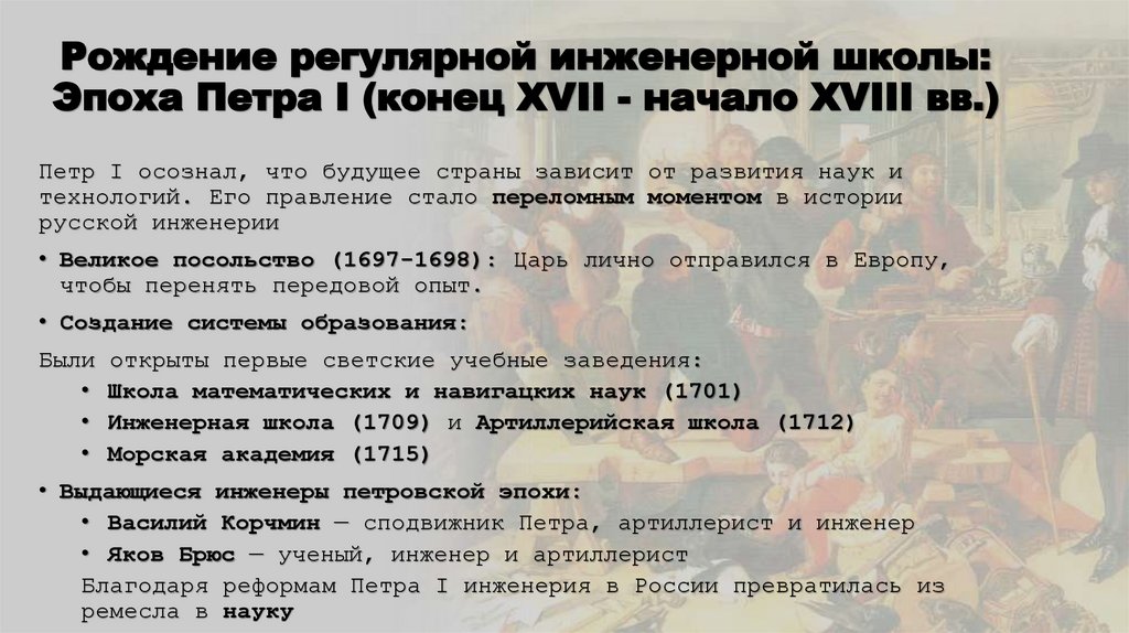 4. Рождение регулярной инженерной школы: Эпоха Петра I (конец XVII - начало XVIII вв.)
