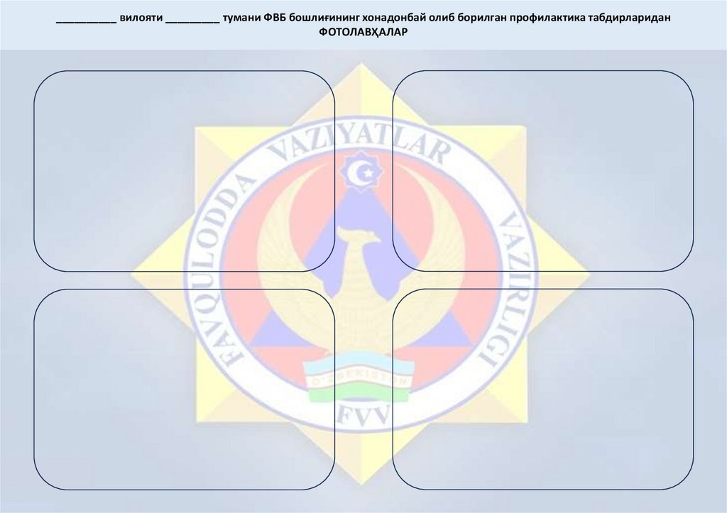 __________ вилояти _________ тумани ФВБ бошлиғининг хонадонбай олиб борилган профилактика табдирларидан