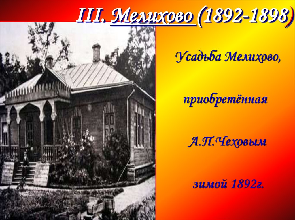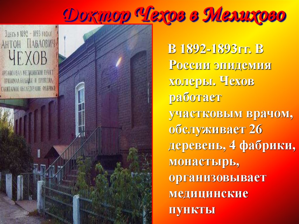 В 1884г. Чехов – заведующий больницей вЗвенигороде, в качестве уездного врача
