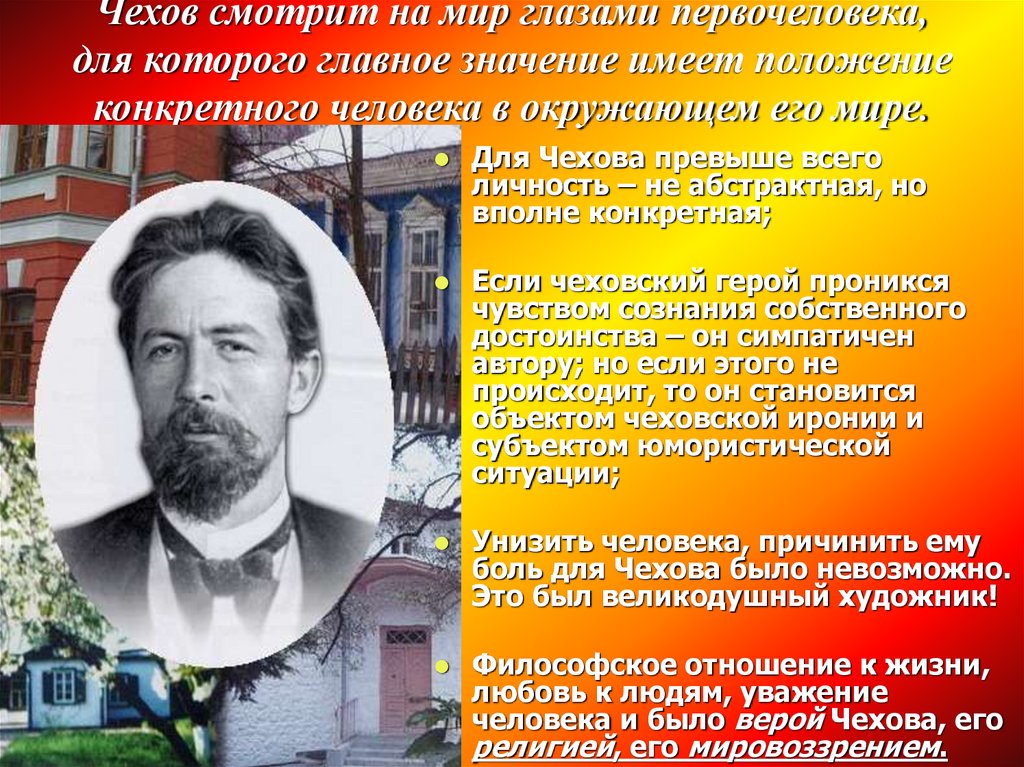 30. Чехов смотрит на мир глазами первочеловека, для которого главное значение имеет положение конкретного человека в окружающем его