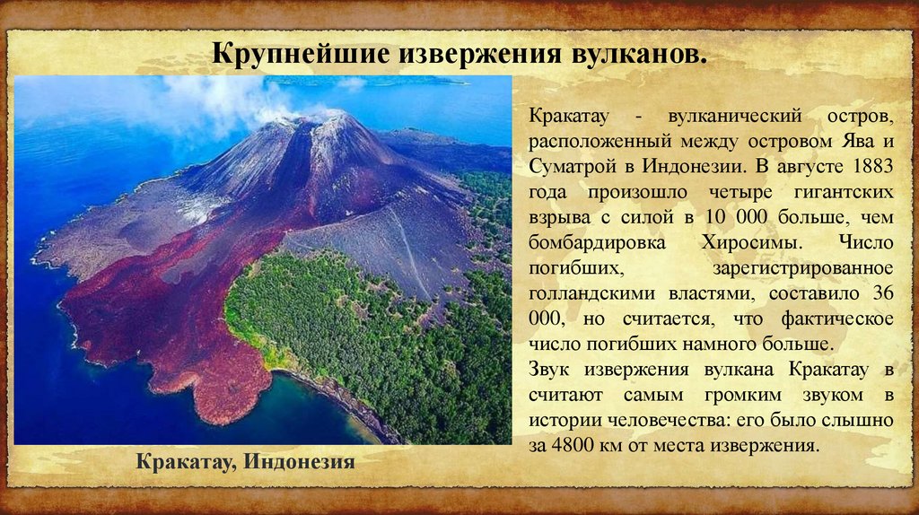 Крупнейшие извержения вулканов.Кракатау, Индонезия