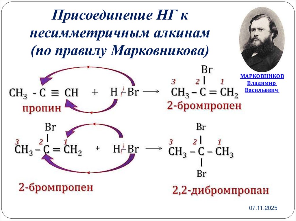18. Присоединение НГ к несимметричным алкинам (по правилу Марковникова)