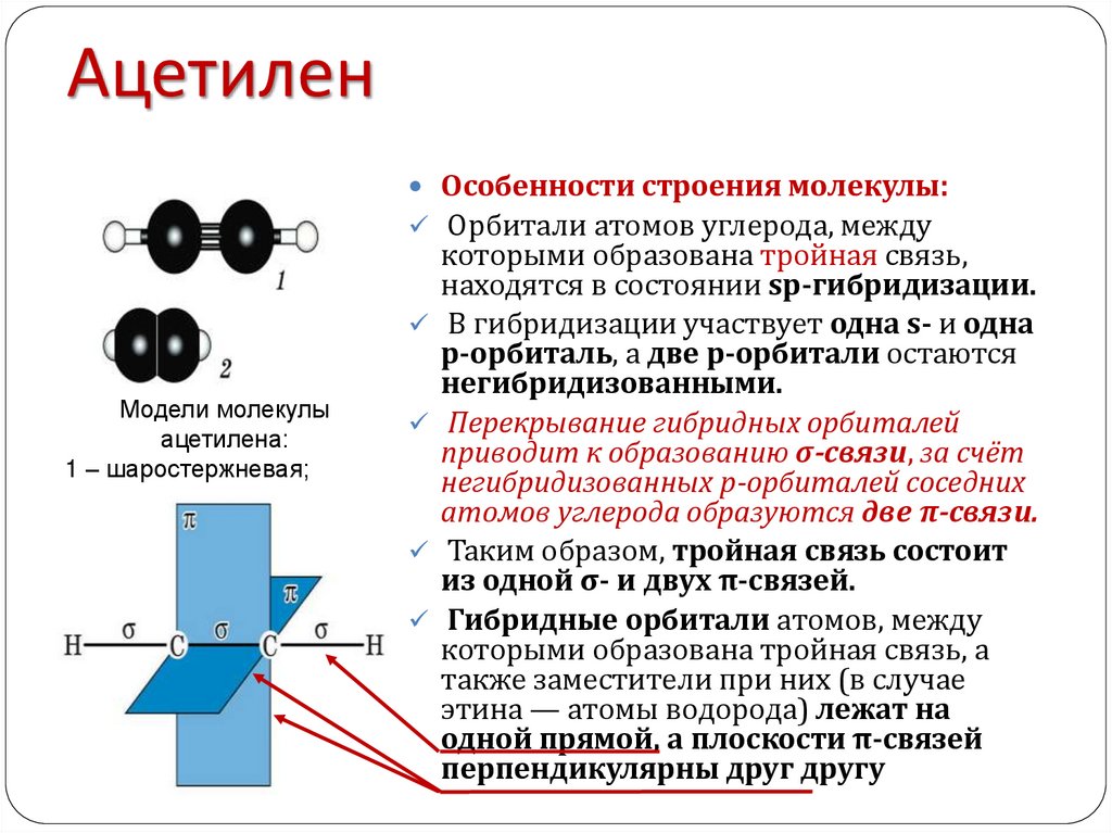 Особенности строения молекулы:Орбитали атомов углерода, между