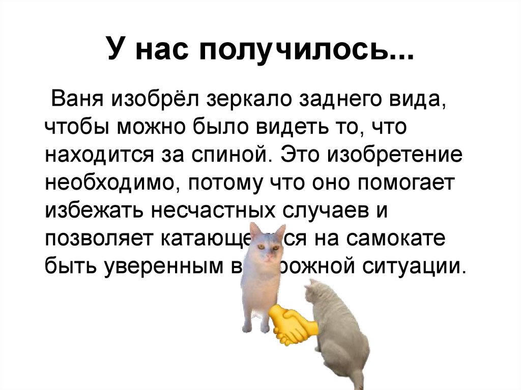 Ваня изобрёл зеркало заднего вида,чтобы можно было видеть то, что