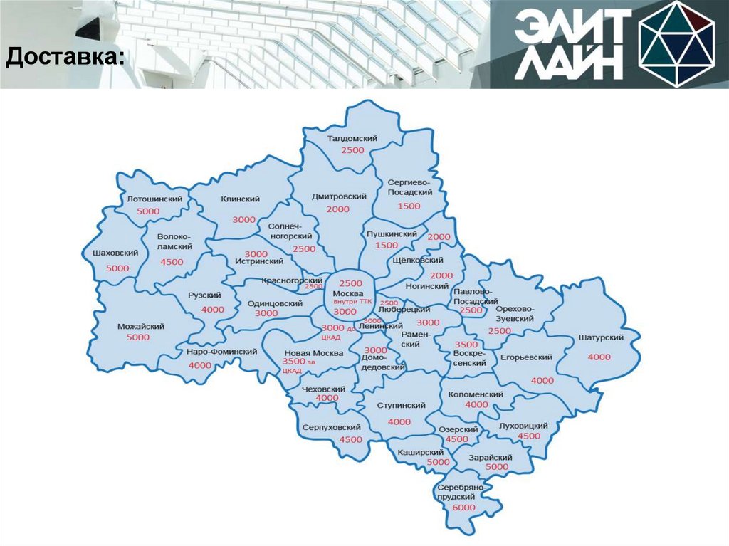 Стоимость услуги «Доставка одного заказа» по районам Московской области