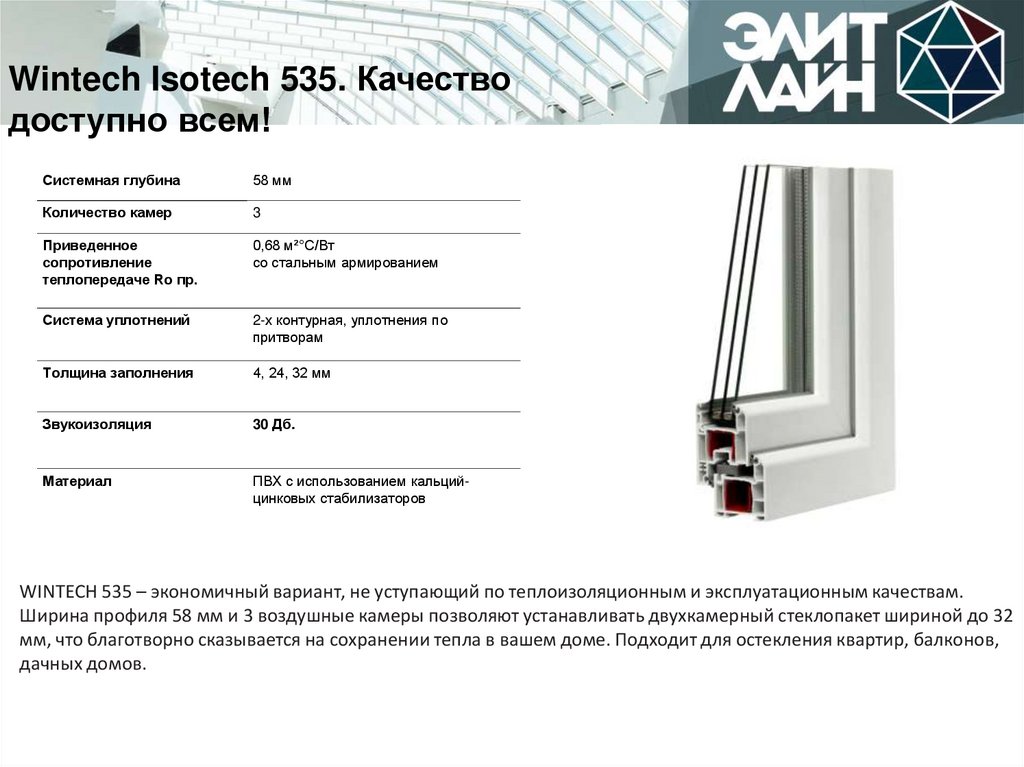 WINTECH 535 – экономичный вариант, не уступающий по теплоизоляционным и эксплуатационным качествам.