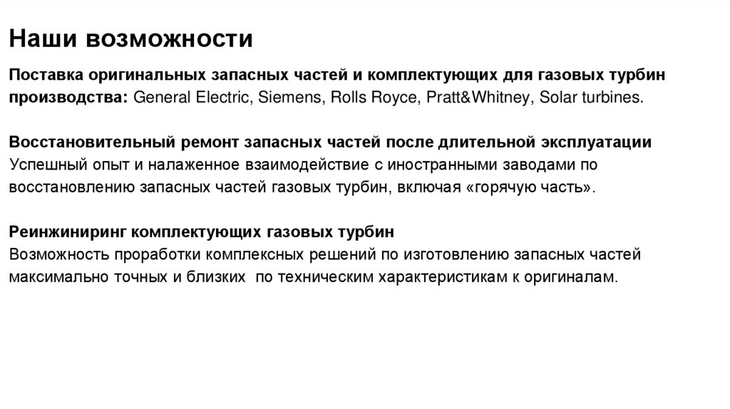 Поставка оригинальных запасных частей и комплектующих для газовых турбинпроизводства: General Electric, Siemens, Rolls Royce, Pratt&Whitney, Solar turbines.