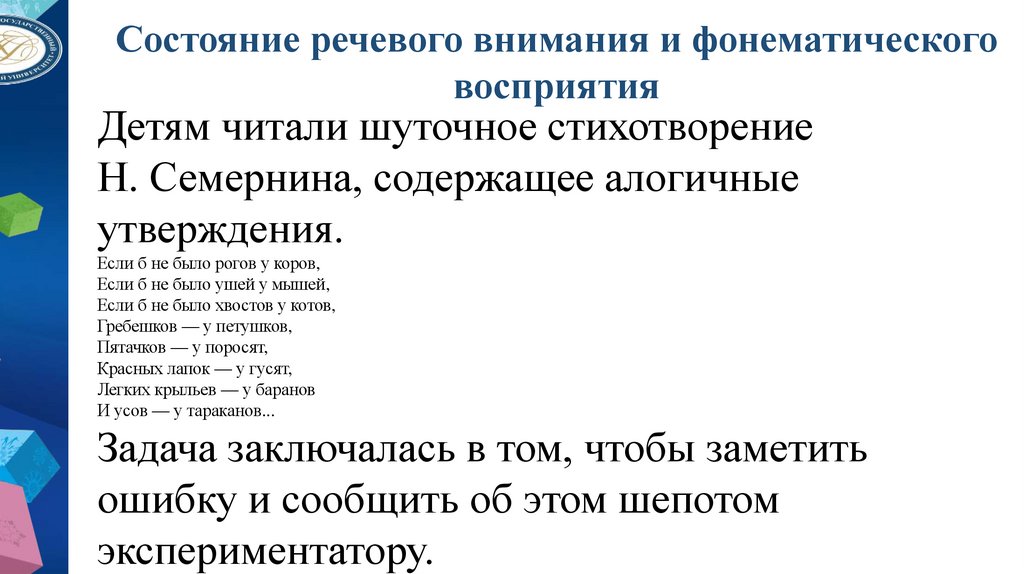 • Речевое внимание и память;