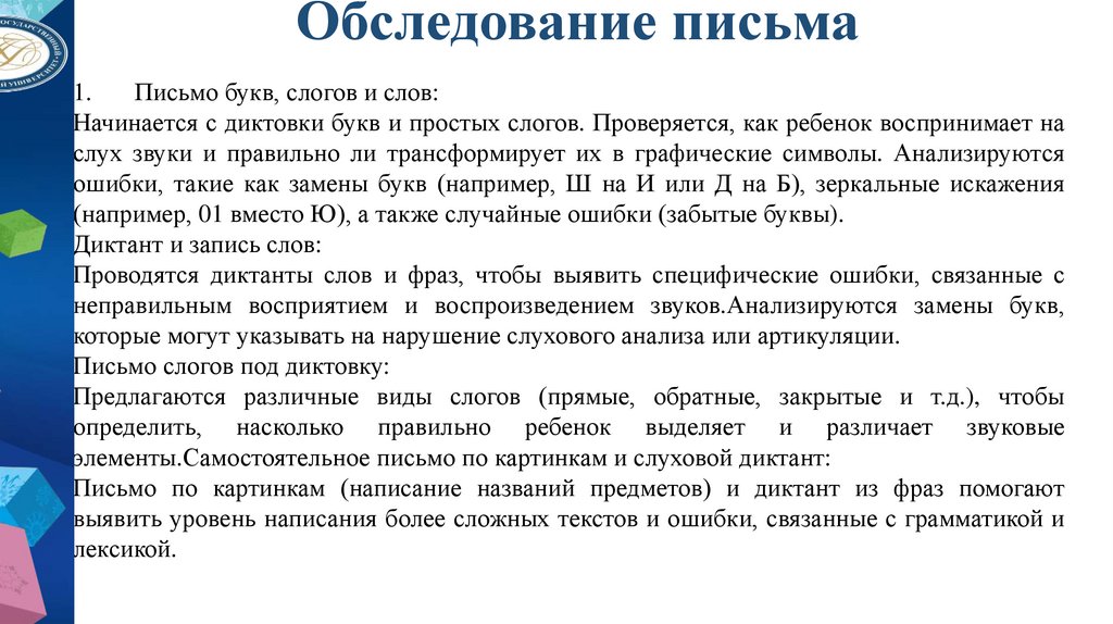 7. Нейропсихологическая диагностика, обследование письма