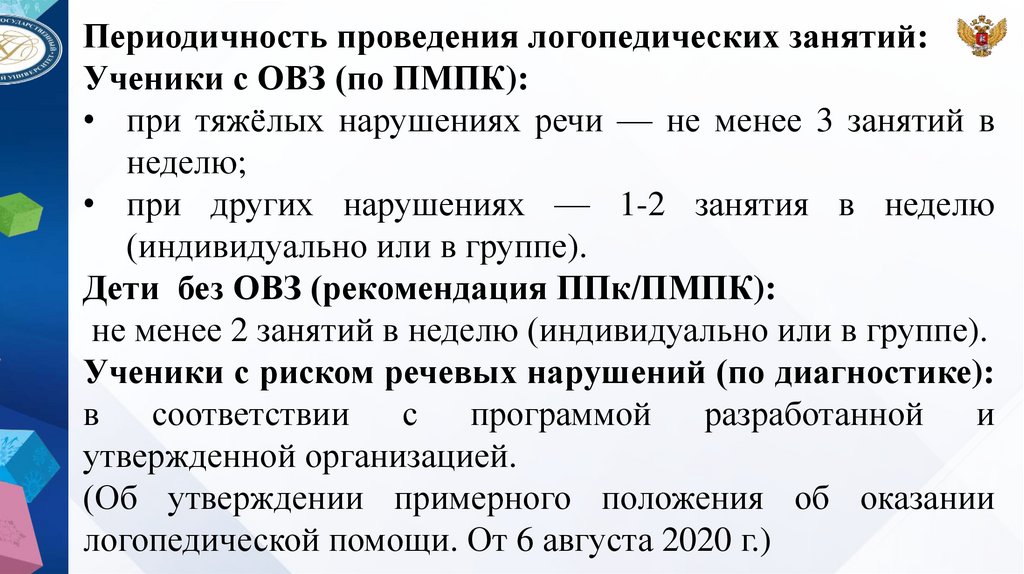 логопедической помощи. От 6 августа 2020 г.)