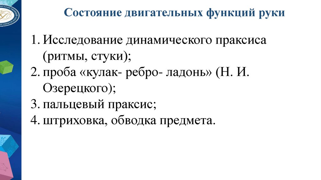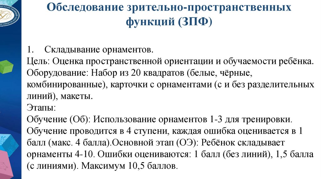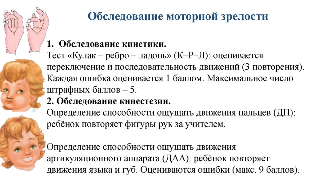 обследование моторной зрелости, обследование зрительнопространственных