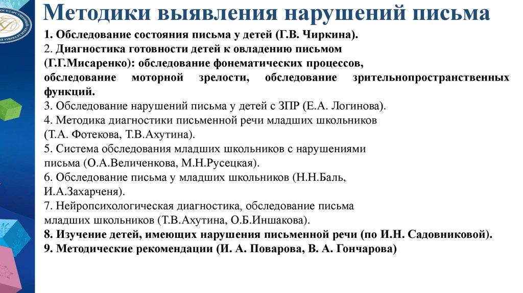 3. Обследование нарушений письма у детей с ЗПР (Е.А. Логинова).