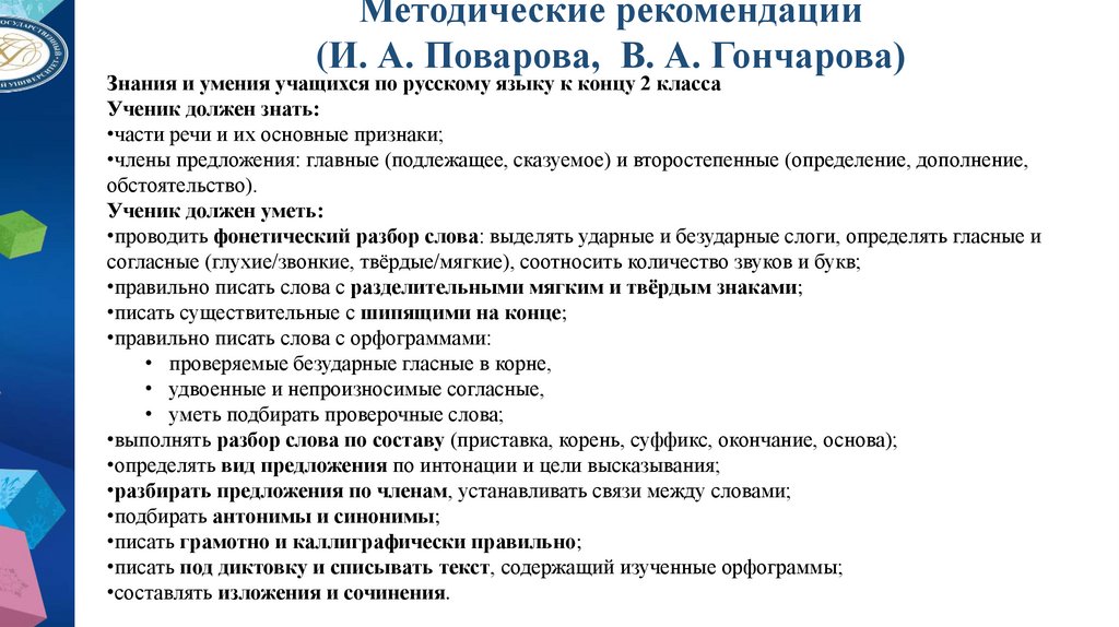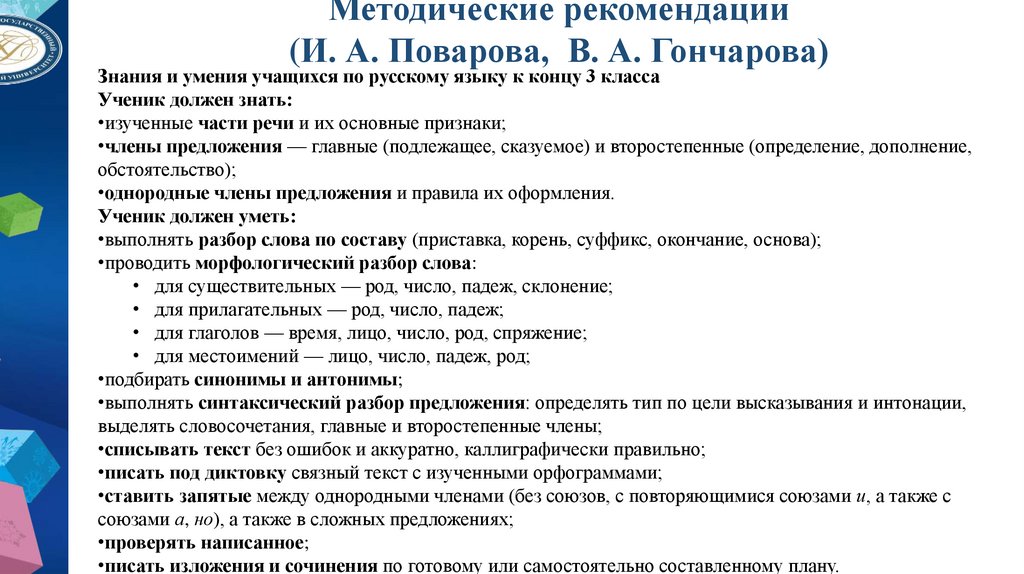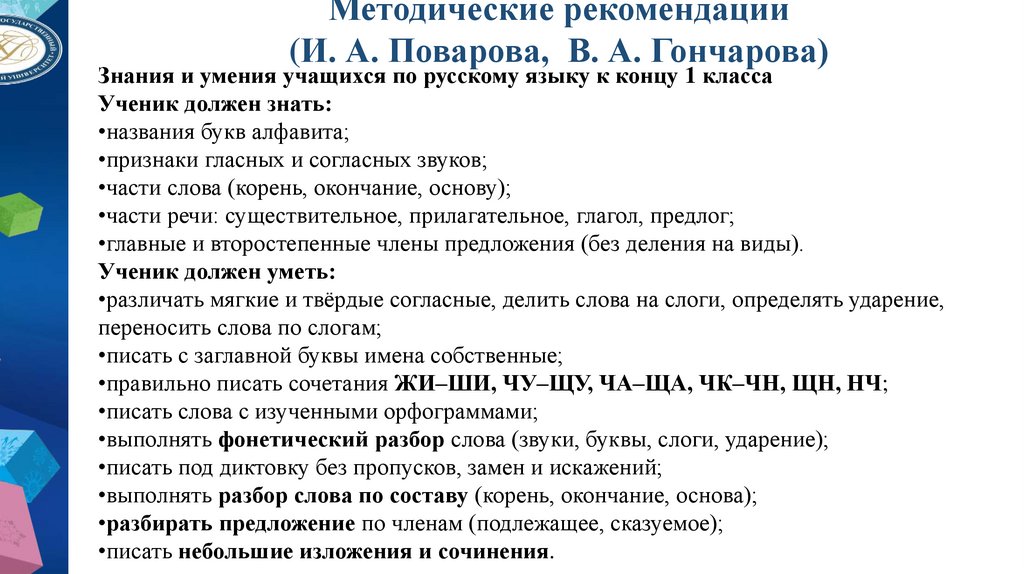 9. Методические рекомендации (И. А. Поварова, В. А. Гончарова)
