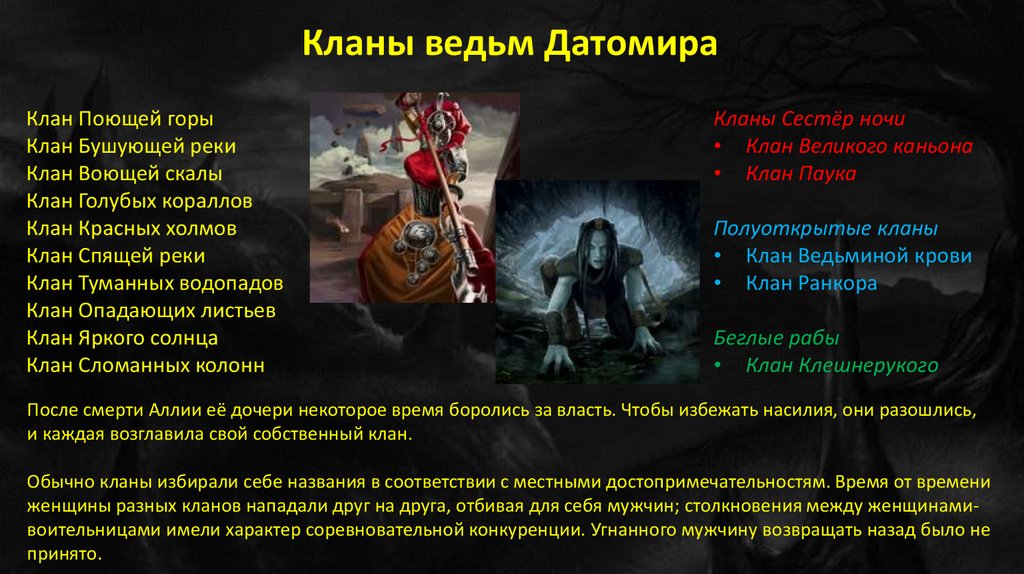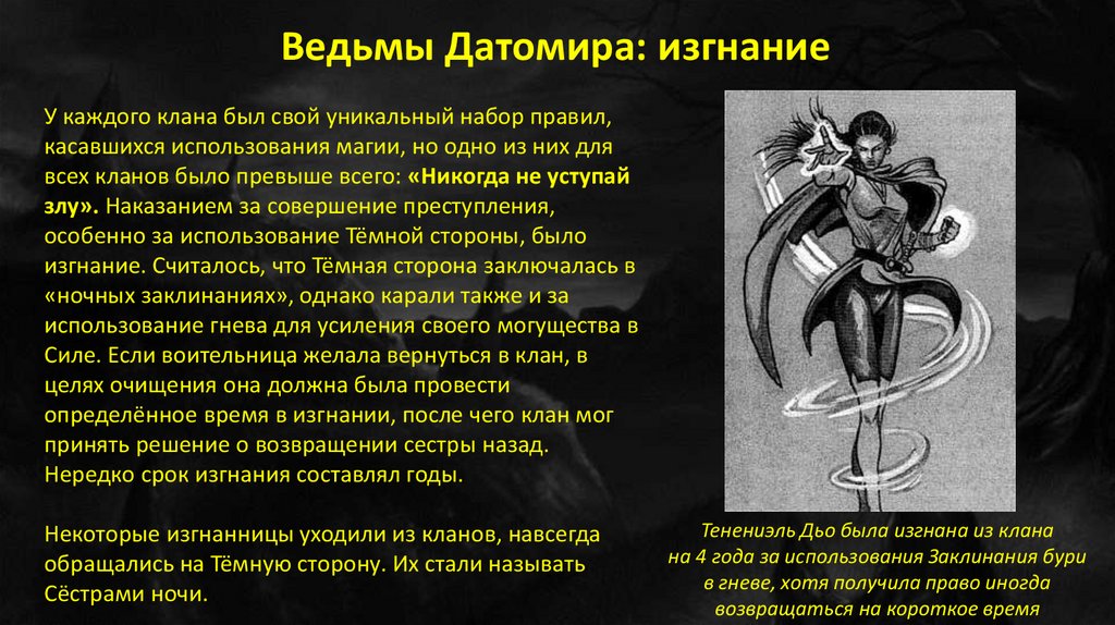Ведьмы Датомира: изгнаниеУ каждого клана был свой уникальный набор правил,