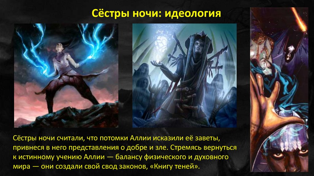 Сёстры ночи: идеологияСёстры ночи считали, что потомки Аллии исказили её заветы,