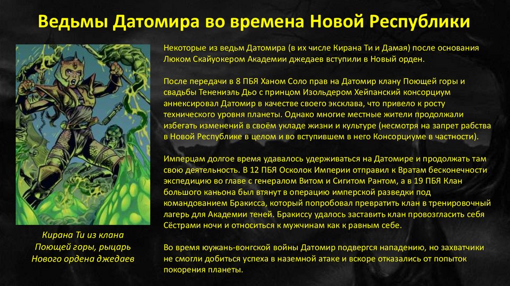 Ведьмы Датомира во времена Новой РеспубликиНекоторые из ведьм Датомира (в их числе Кирана Ти и Дамая) после основания
