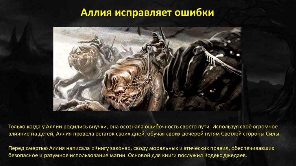 Аллия исправляет ошибкиТолько когда у Аллии родились внучки, она осознала ошибочность своего пути. Используя своё огромное