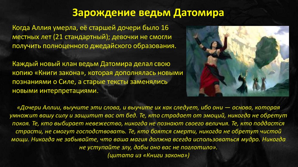 Зарождение ведьм ДатомираКогда Аллия умерла, её старшей дочери было 16