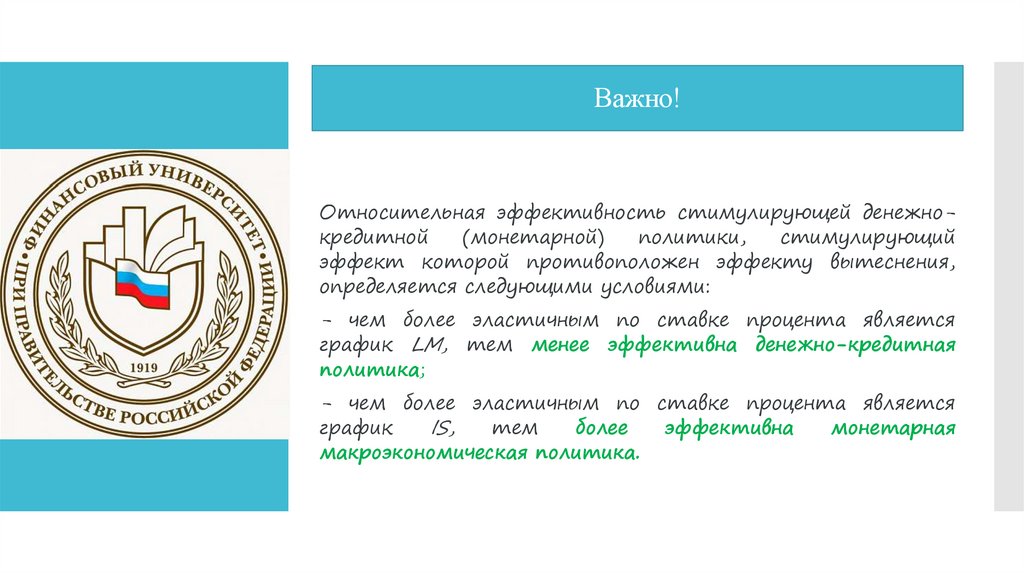 Важно!Относительная эффективность стимулирующей денежнокредитной