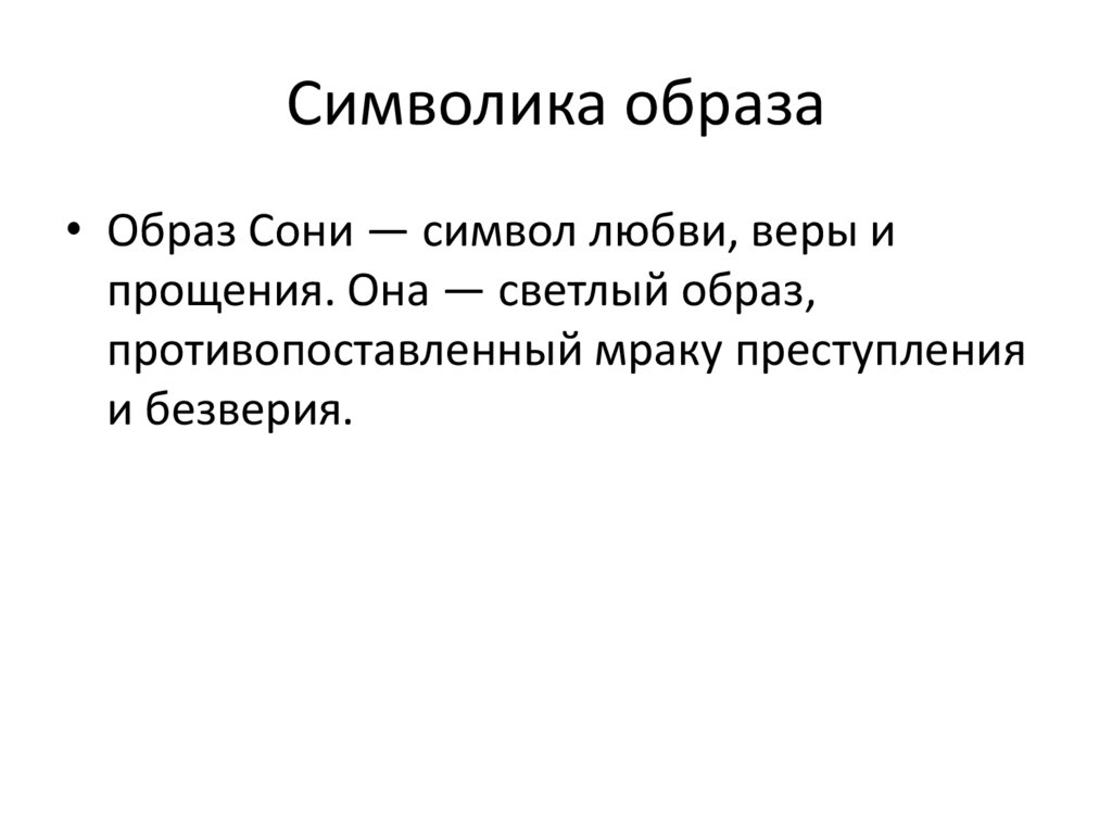 Символика образа• Образ Сони — символ любви, веры и