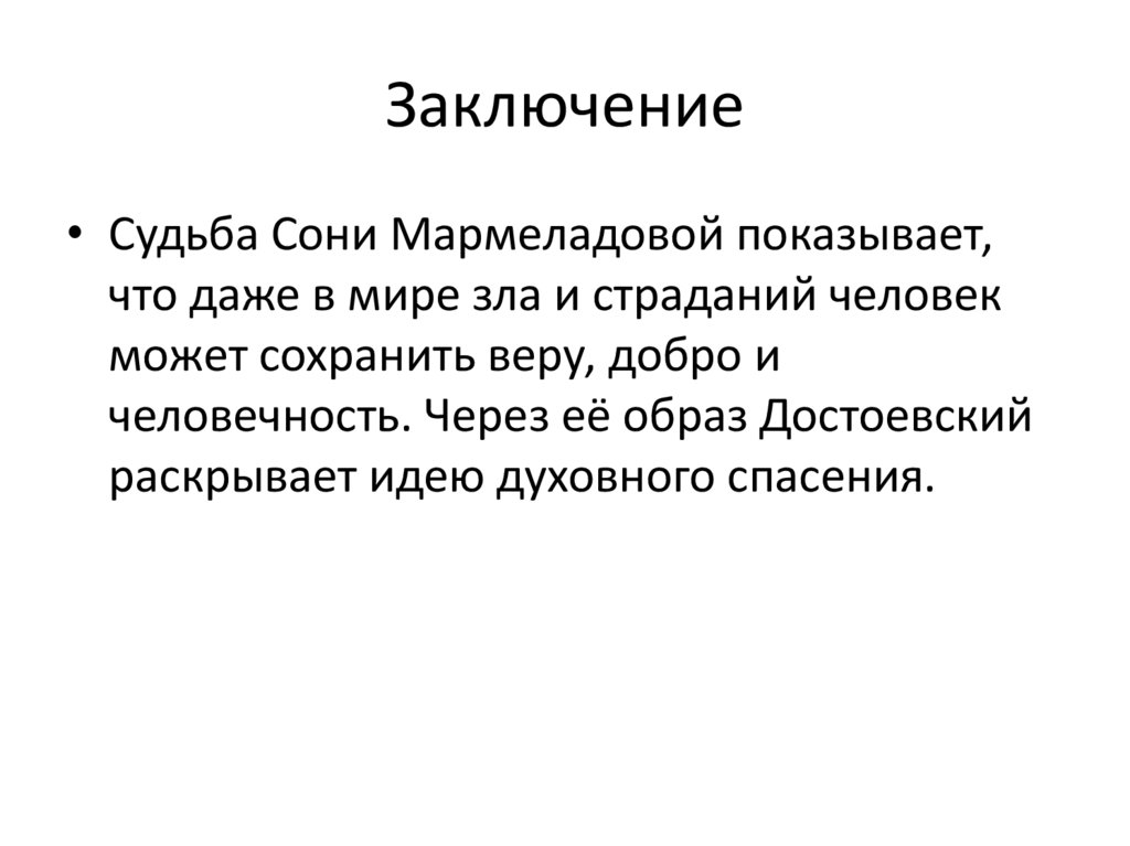 Заключение• Судьба Сони Мармеладовой показывает,