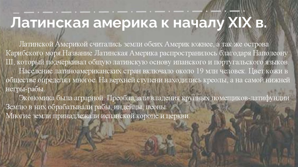 Латинская америка к началу XIX в.Латинской Америкой считались земли обеих Америк южнее, а так же острова