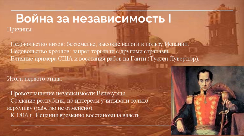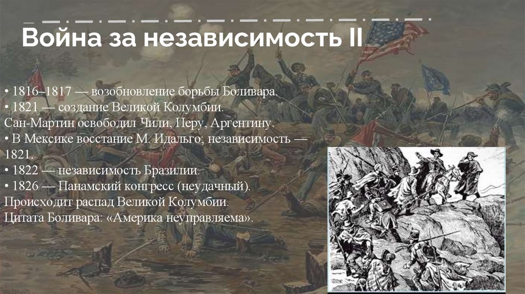 Война за независимость II• 1816–1817 — возобновление борьбы Боливара.