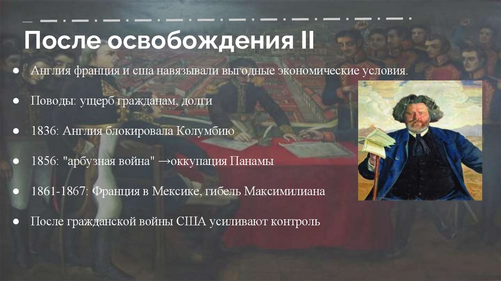 После освобождения II● Англия франция и сша навязывали выгодные экономические условия.