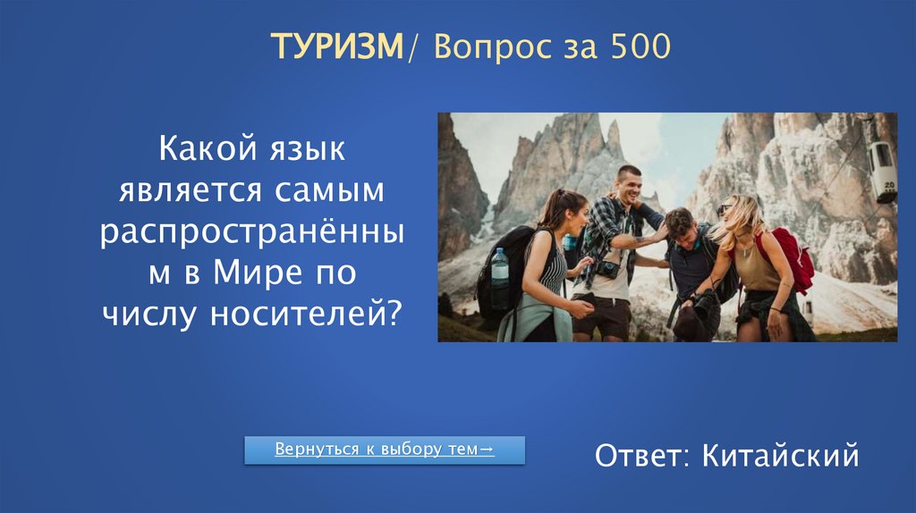 ТУРИЗМ/ Вопрос за 500Какой язык