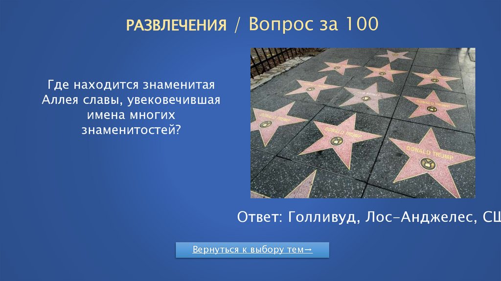 РАЗВЛЕЧЕНИЯ / Вопрос за 100Где находится знаменитая