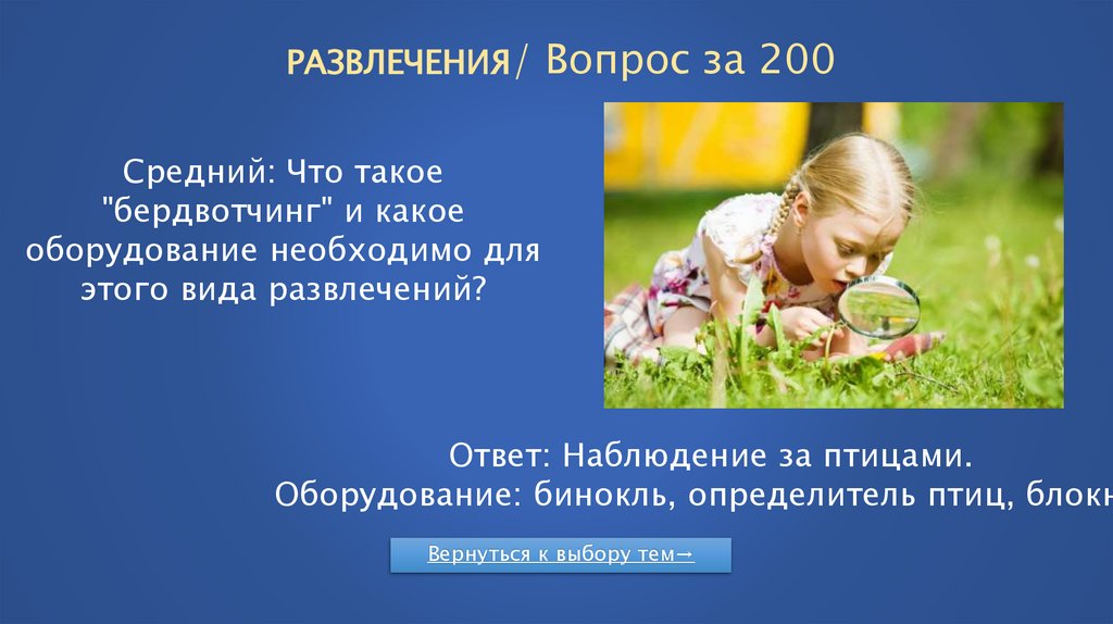 РАЗВЛЕЧЕНИЯ/ Вопрос за 200Средний: Что такое