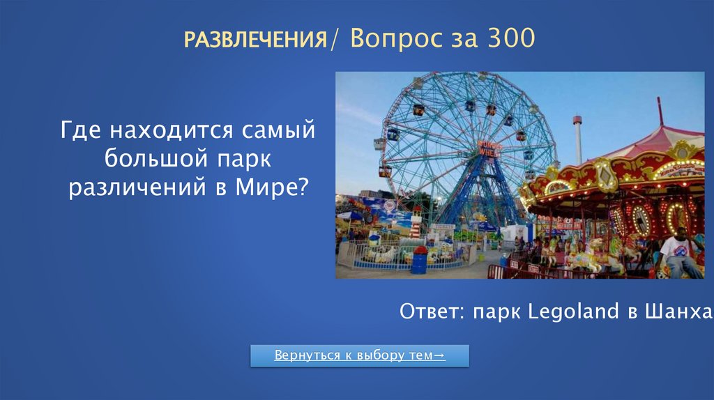 РАЗВЛЕЧЕНИЯ/ Вопрос за 300Где находится самый