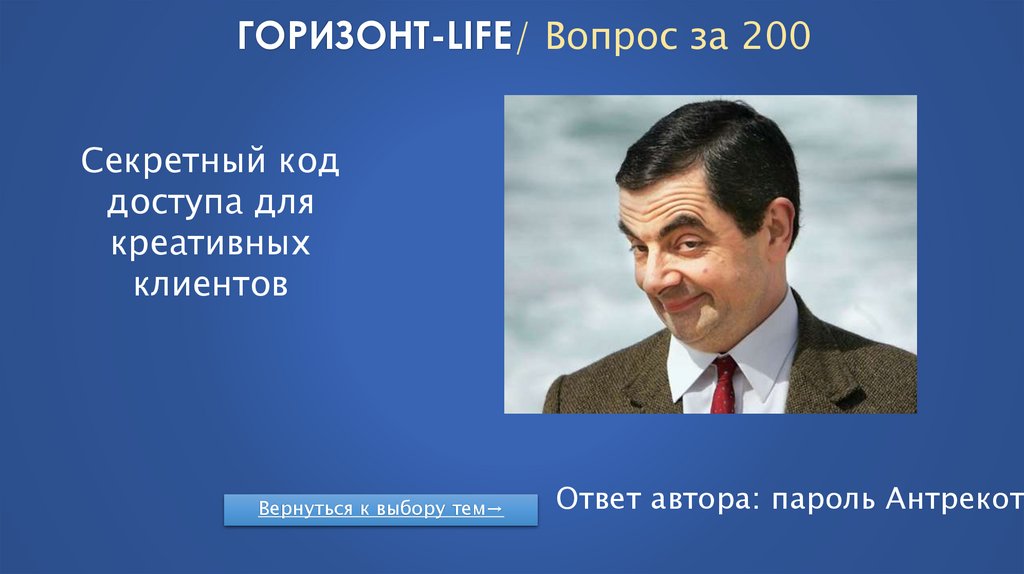 ГОРИЗОНТ-LIFE/ Вопрос за 200Секретный код