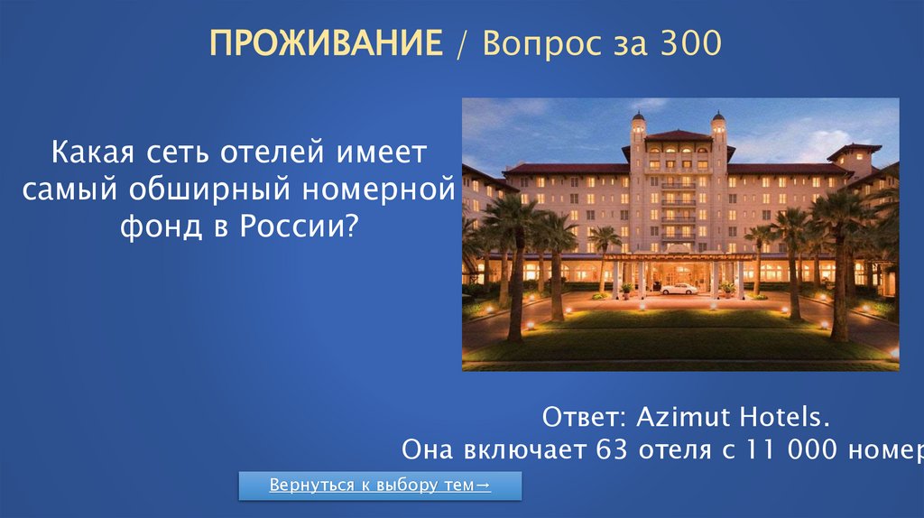 ПРОЖИВАНИЕ / Вопрос за 300Какая сеть отелей имеет