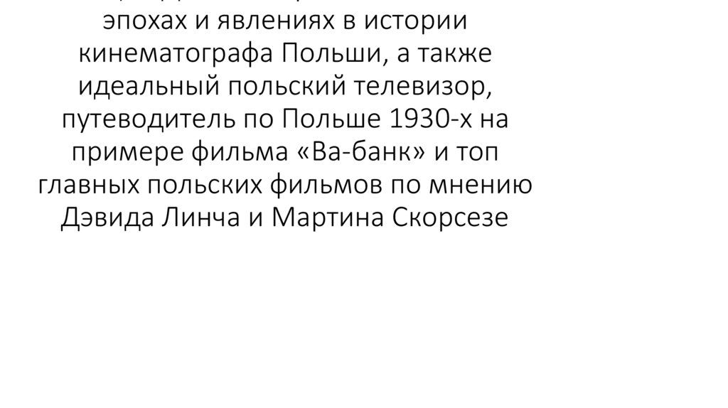 1. Курс Польское кино Лекции Дениса Вирена о ключевых эпохах и явлениях в истории кинематографа Польши, а также идеальный польский