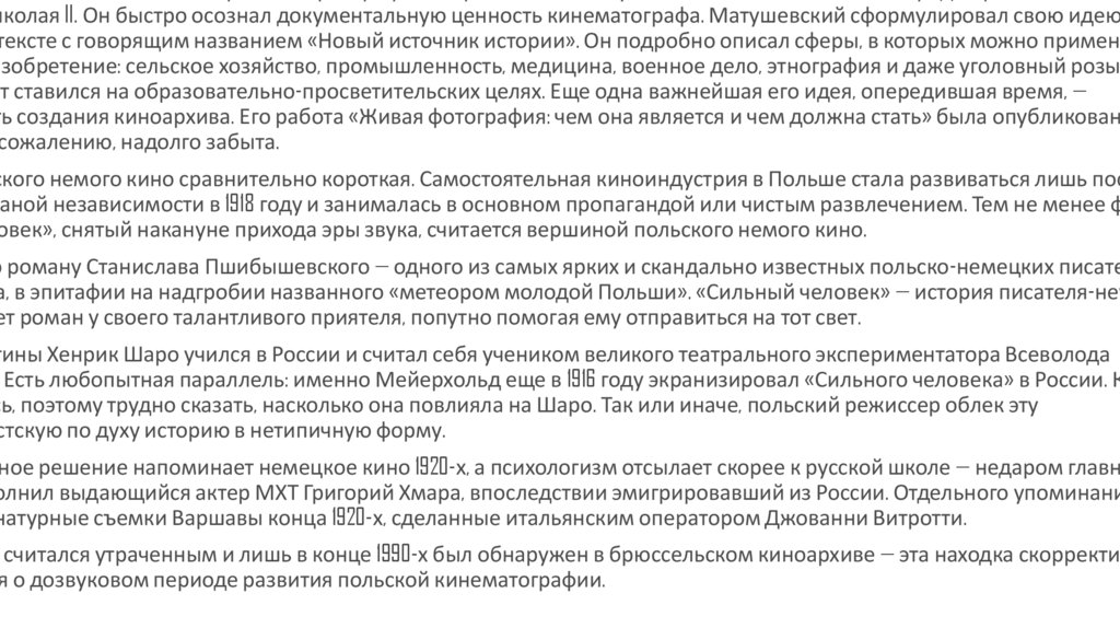 ского немого кино сравнительно короткая. Самостоятельная киноиндустрия в Польше стала развиваться лишь пос