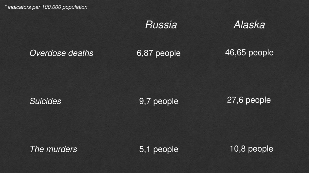 * indicators per 100,000 populationRussia