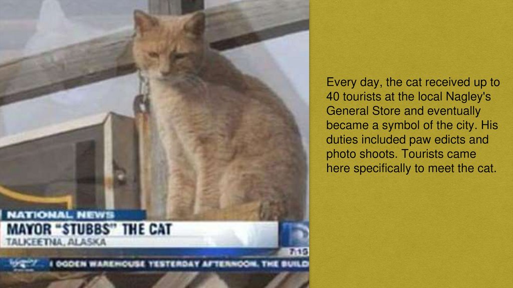 Every day, the cat received up to40 tourists at the local Nagley's