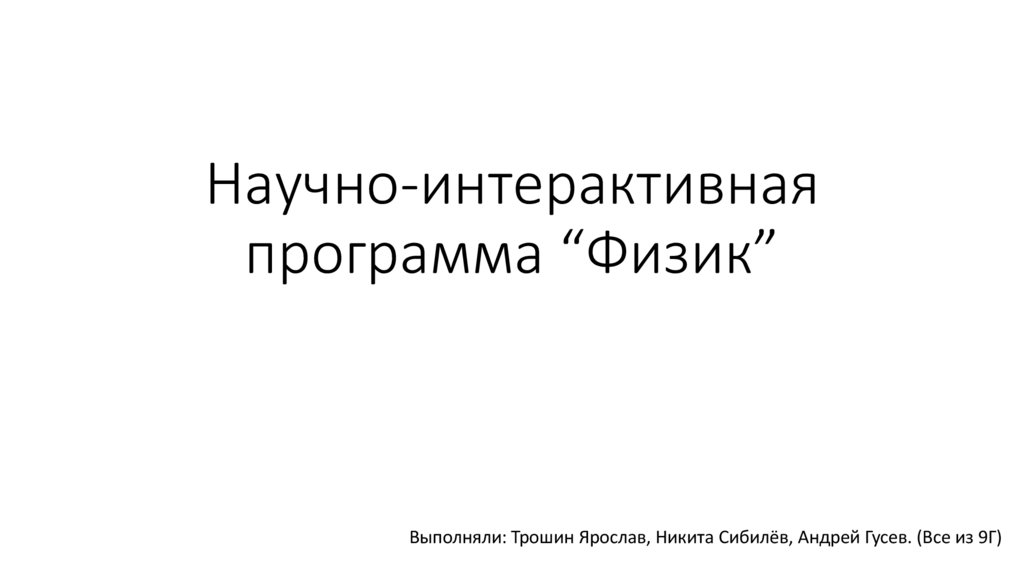 Здравствуйте! Представляем Вашему вниманию проект созданияинтерактивной программы для изучения физики. В современном мире,