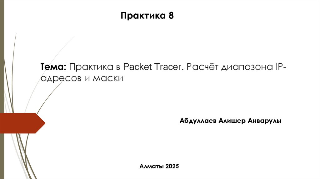 Практика 8Тема: Практика в Packet Tracer. Расчёт диапазона IPадресов и маски
