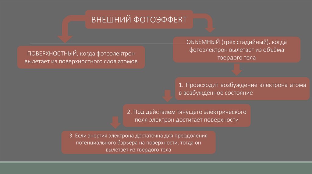 фотоэлектроны покидают пределы тела, переходя
