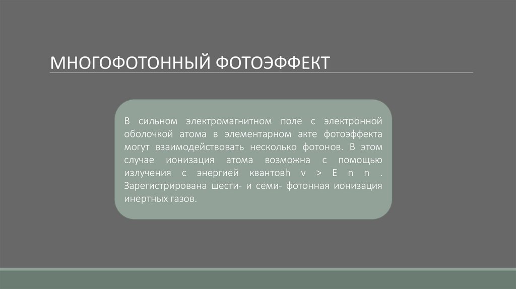 МНОГОФОТОННЫЙ ФОТОЭФФЕКТВ сильном электромагнитном поле с электронной