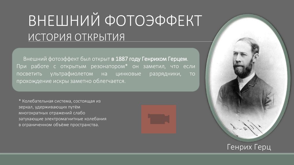 Внешний фотоэффект был открыт в 1887 году Генрихом Герцем.