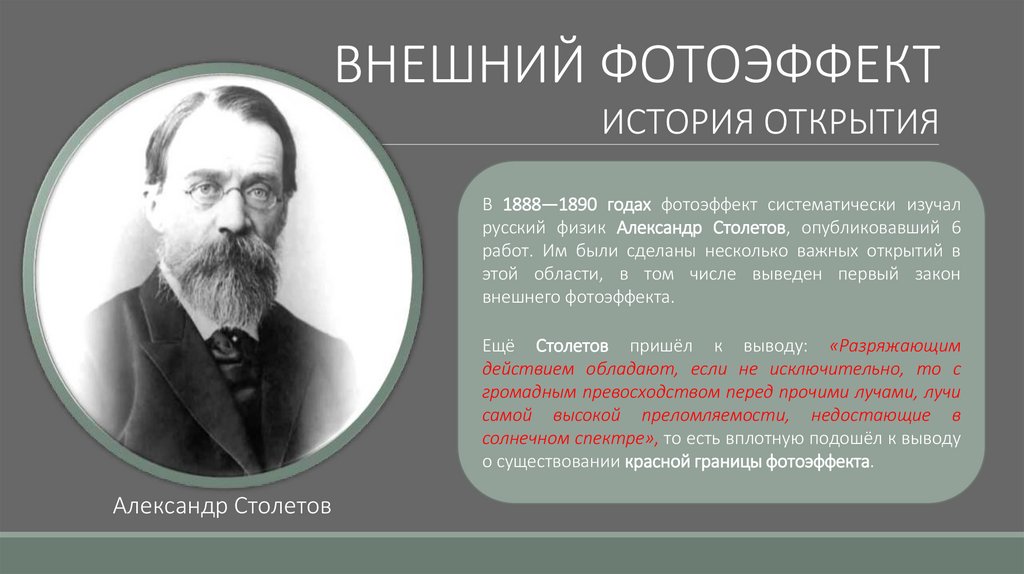 В 1888—1890 годах фотоэффект систематически изучал