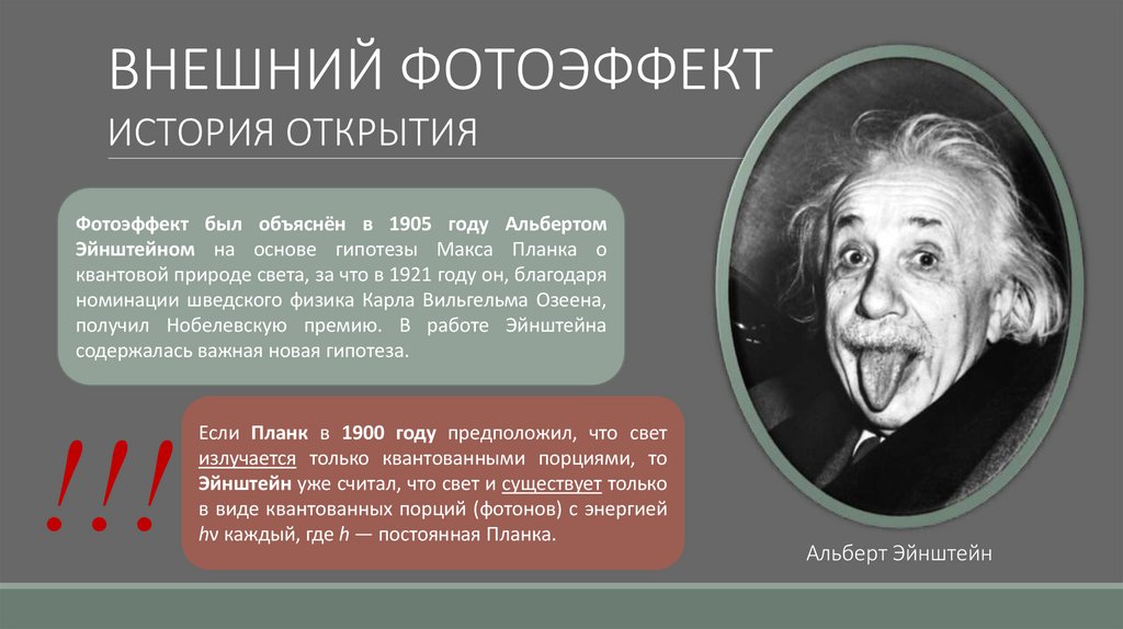 квантовой природе света, за что в 1921 году он, благодаря